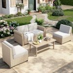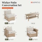 Patio Furniture Set, 5 Piece Outdoor Rattan Wicker Sectional Sofa Couch Conversation Set with 5.5″ Thick Waterproof Cushions and Coffee Table for Deck Backyard
