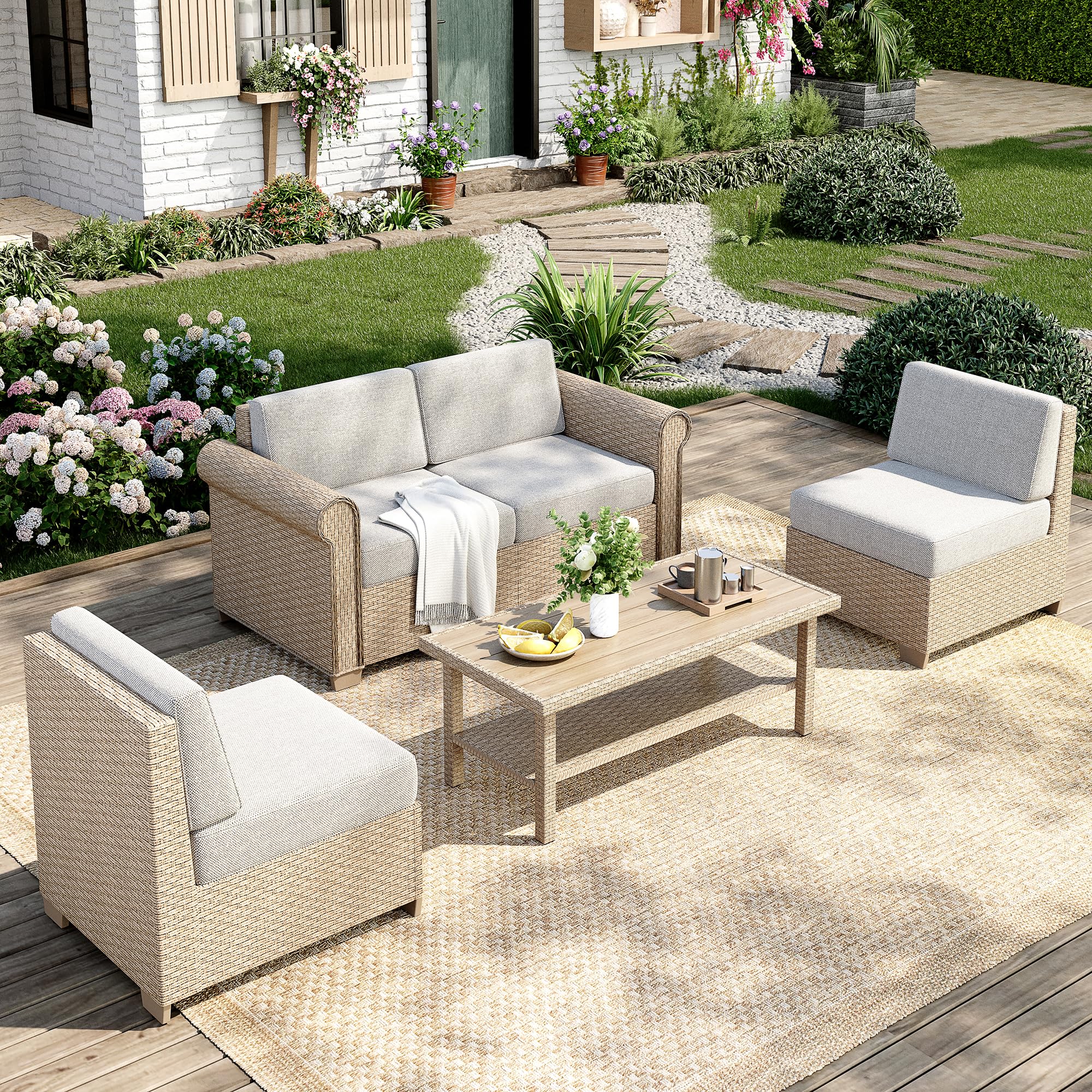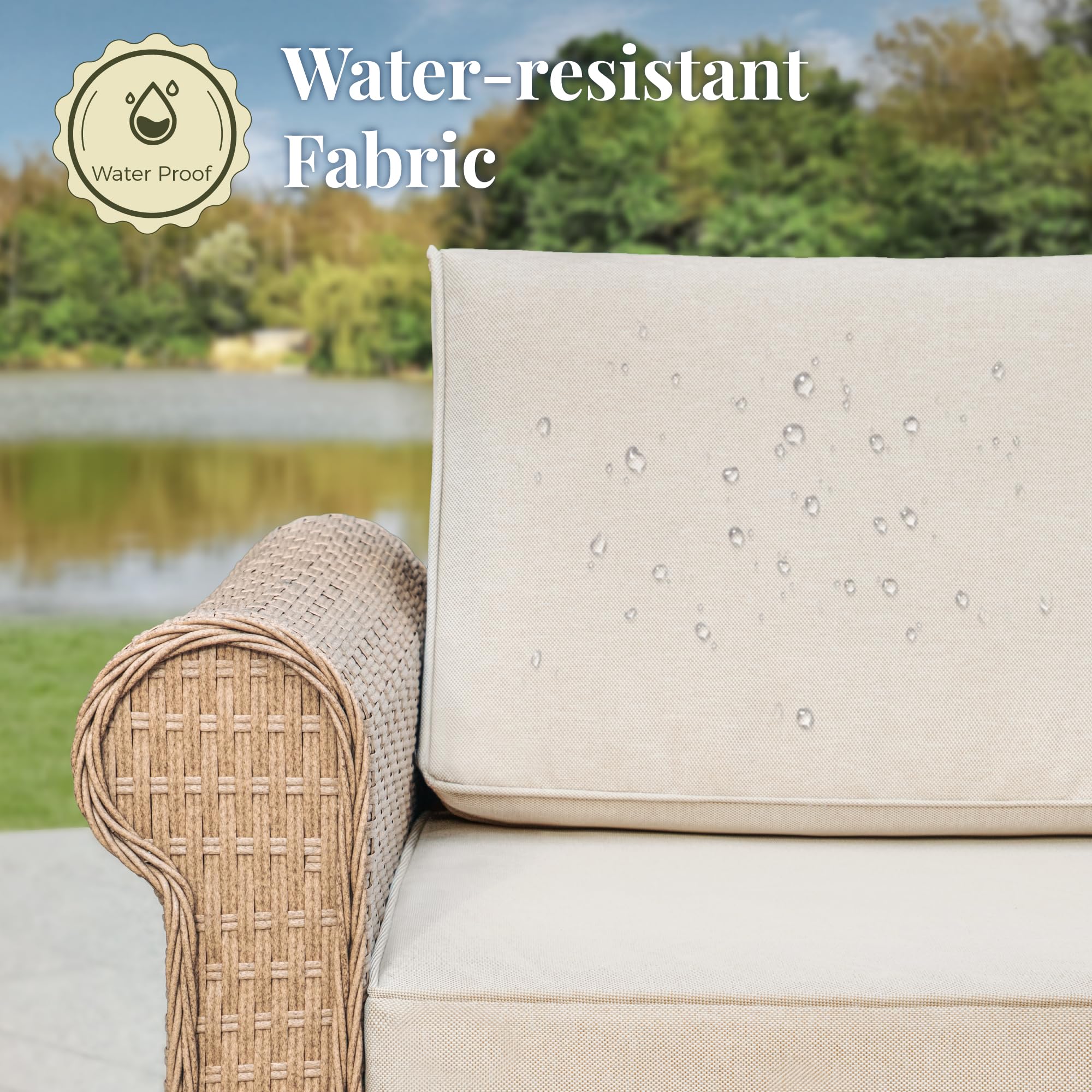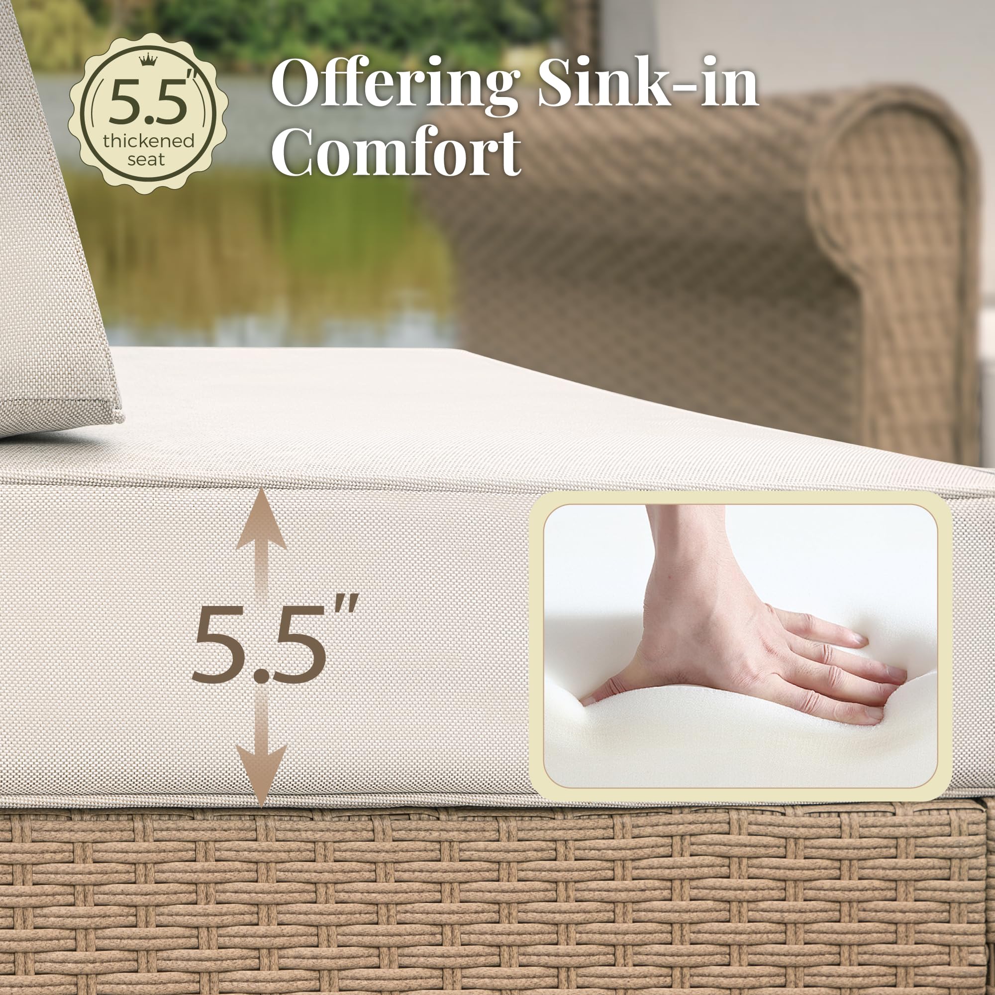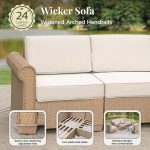 - Strongly Constructed for Longevity: Sturdy iron plate seat panels offer superior support compared to rattan seat panels, ensuring a super-safe sitting experience on this sofa set. Each seat can support approximately 350 lbs. The widened triple-strand arched armrests add a stylish dimension, while adjustable foot pads guarantee stability even on uneven surfaces.